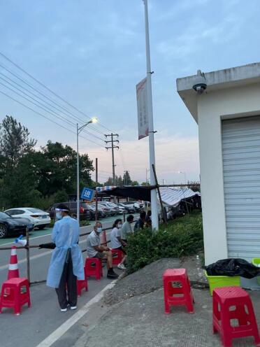 每一次的核酸检测,志愿者都需在早上4点前到达核酸检测点,穿戴好防护服、面罩、口罩、手套,等待医生的到来。我需要带领80岁以上的老人或行动不便的残疾人去往绿色通道,并用便利贴为他们记下姓名与电话号码,缩短做检测时登记信息所需的时间,汗水打湿了面罩上沿的海绵垫条,只能在空闲时匆忙喝几口水。在不做核酸检测的空闲日子里,我也需要带着电脑去村委会为已做核酸的人员登记信息,或是为广陵公安局打访问电话,核实公安局登记信息以及询问核酸检测情况,可以说是度过了极为充实的一个月。