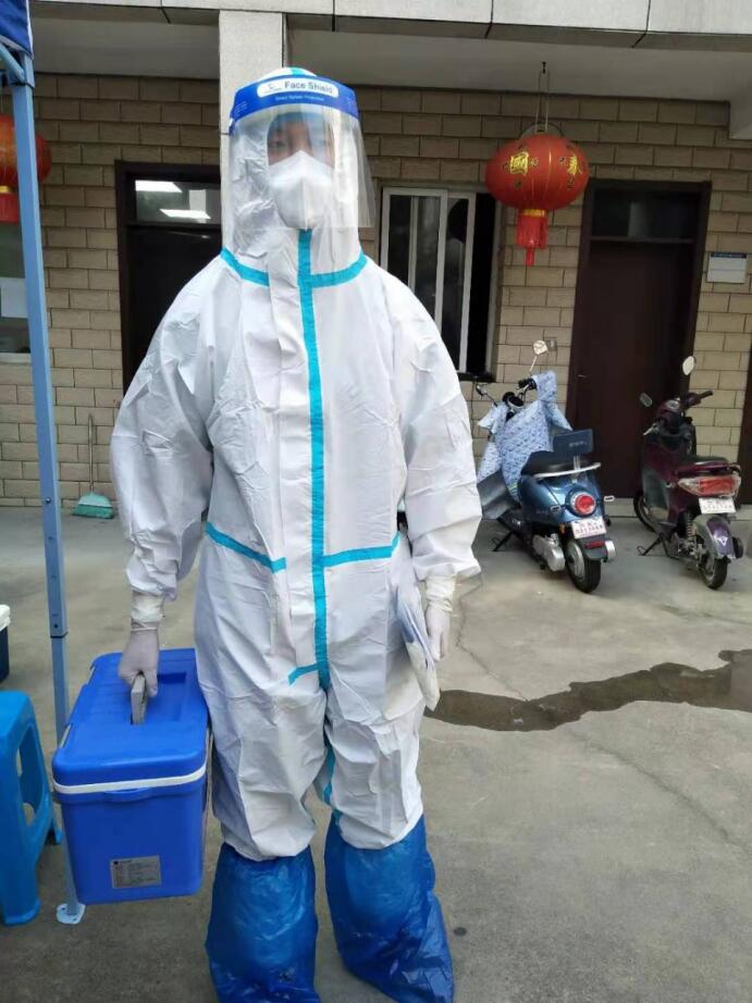 在社区陆续开展的5次全民核酸检测过程中,作为转运员的我主要负责的是核酸样本的收集、转运和交接工作,累计转运的样本达到了4万多剂次。每至全民核酸检测日,我来回穿梭在各个采样台前,询问、登记核酸样本数目,而后,将样本装入专用转运箱,搭乘专车转运至样本检测点。为确保转运的安全,每次返回时都要更换防护服,每一次更换防护服时,看着防护服里面倒出的汗水和被汗水泡得发白起皱的手,虽然也感觉辛苦,但更感觉到一种尽责之后的豪情。
