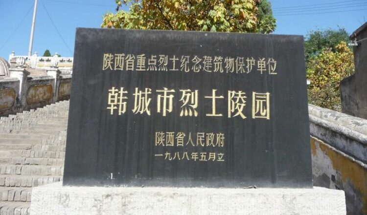 韩城市烈士陵园位于陕西省韩城市金城区陵东路1号,为陕西省重点烈士纪念建筑物保护单位和陕西省国防教育基地。1957–1959年,韩城市人民政府在圆觉寺遗址上兴建了韩城烈士陵园,陵园总占地六十三亩,东西宽约300米,共建有东西陵五个墓区,安葬着469名烈士。这些烈士中外籍烈士61名,本籍烈士72名,以及无名烈士336名。面对只有编号没有英名的烈士,人们已无法考究他们的身世,但人民会铭记他们把身驱捐给了共和国的新生,会知道共和国的旗帜上有着他们血染的风采。