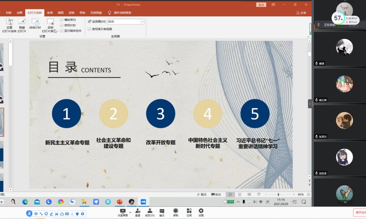 自动化学院19级9191100Y01团支部为响应“请党放心,强国有我”的主题团日活动,于2021.9.29下午3点在线上进行“学党史,强信念,跟党走”学习教育专题学习会。