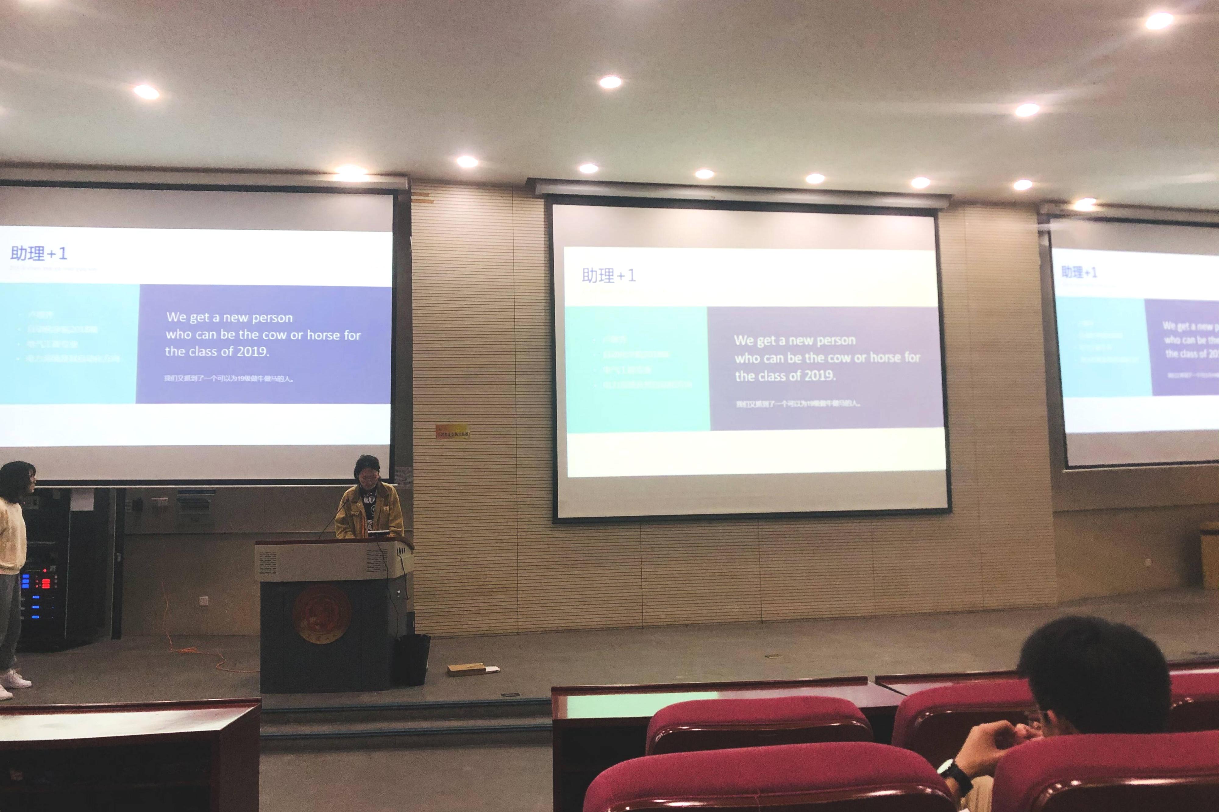 同时,年级还迎来一位新助理,卢思齐助理,她对自己进行了介绍说明并表达了为同学们服务的意愿与决心。
