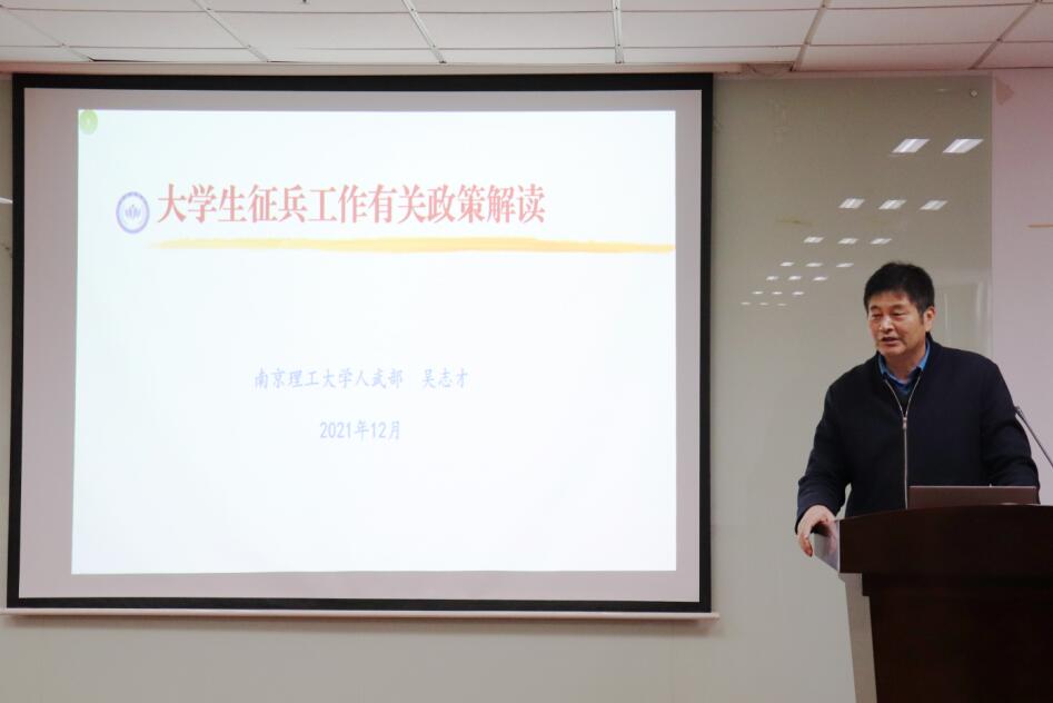 2021年12月8日下午,自动化学院在院办9059举办了大学生征兵政策宣讲会。此次会议由辅导员何蕾主持召开,特别邀请了南京理工大学人武部吴志才主任作为主讲人,我院对征兵感兴趣的学生们参加了此次宣讲会。