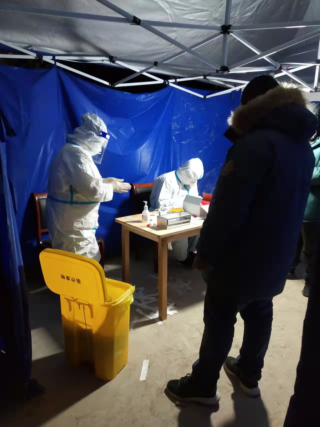 2月16日,村委会发布了区域核酸检测的公告,并在社区里招揽志愿者。因为返校遥遥无期,再加上一些兴趣,我报名参加了志愿者活动。经过一些简单的培训,第二天下午志愿者们就全副武装,走上了工作岗位。